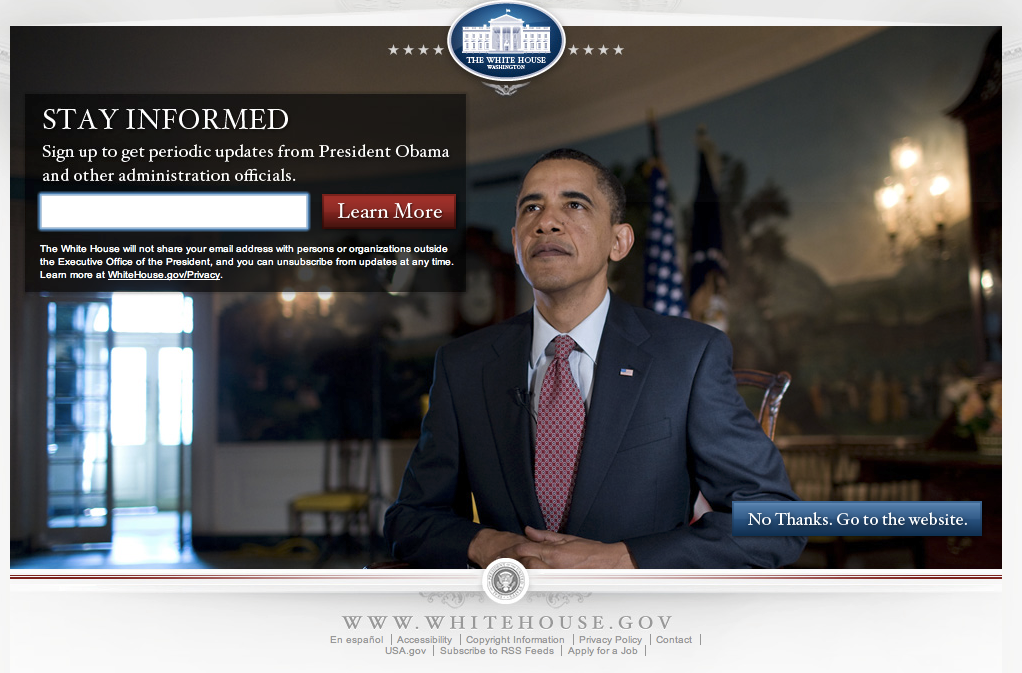 La llegada de Barack Obama a la Casa Blanca implicó una aparente apertura en muchos asuntos de gobierno, así como también en el software. Uno de los primeros cambios fue el gestor de los contenidos de su sitio web oficial, whitehouse.gov, que se migró a Drupal, que reemplazó a su antiguo sistema “propietario” de la era Bush en octubre de 2009.